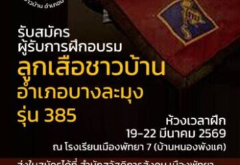 Read Moreลูกเสือชาวบ้านอำเภอบางละมุง เปิดรับสมัครผู้รับการอบรมลูกเสือชาวบ้าน รุ่นที่ 385 ห้วงเวลาการฝึก ๑๙-๒๒ มีนาคม ๒๕๖๙ ณโรงเรียนเมืองพัทยา๘ (วัดชัยมงคล)