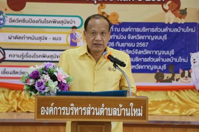องค์การบริหารส่วนตำบลบ้านใหม่ แบ่งการปกครองออกเป็น 11 หมู่บ้านมีประชากรสุนัข 786 ตัว แมว 598 ตัว รวมทั้งหมด 1,384 ตัว สำนักงานปศุสัตว์จังหวัดกาญจนบุรีร่วมกับองค์การบริหารส่วนตำบลบ้านใหม่ ได้ดำเนินงานกิจกรรมโครงการนี้ขึ้น ภายใต้แผนยุทธศาสตร์โครงการสัตว์ปลอดโรคคนปลอดภัยจากโรคพิษสุนัขบ้าตามพระปณิธาน ศาสตราจารย์ ดร.สมเด็จพระเจ้าน้องนางเธอ เจ้าฟ้าจุฬาภรณวลัยลักษณ์ อัครราชกุมารี กรมพระศรีสวางควัฒน วรขัตติยราชนารี