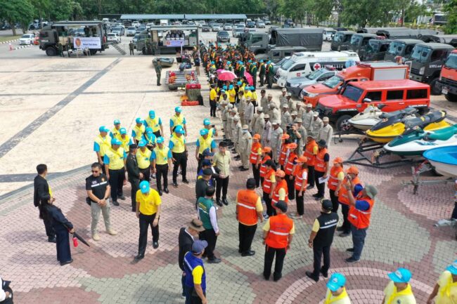 วันนี้(17 ตุลาคม 2567) เวลา 13.30 น. ณ บริเวณด้านหน้าศาลากลางจังหวัดกาญจนบุรี นายรณภพ เวียงสิมมา รองผู้ว่าราชการจังหวัดกาญจนบุรี รักษาราชการแทนผู้ว่าราชการจังหวัดกาญจนบุรี ตรวจความพร้อมกำลังพล ยานพาหนะ เครื่องมือ อุปกรณ์ในภารกิจ บรรเทาสาธารณภัย ของจังหวัดกาญจนบุรี