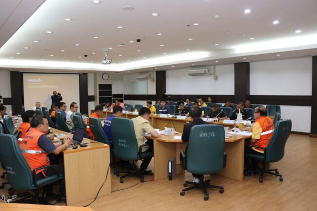 จากนั้นเวลา 14.00 น. ณ ห้องประชุมเอราวัณ ชั้น4 ศาลากลางจังหวัดกาญจนบุรี ได้มีการประชุมเตรียมความพร้อมรับสถานการณ์อุทกภัยจังหวัดกาญจนบุรี ปี 2567 กับหน่วยงานที่เกี่ยวข้องฯ ในการติดตามระดับน้ำและปริมาณน้ำ ของแต่ละเขื่อนในจังหวัดกาญจนบุรี และเตรียมความพร้อมเครื่องจักร เครื่องมือ อาคารชลศาสตร์ ระบบระบายน้ำโทรมาตร บุคลากรประจำพื้นที่เสี่ยง ศูนย์อพยพให้สามารถรองรับสถานการณ์ในช่วงน้ำหลากและฝนทิ้งช่วง พร้อมทั้งตรวจสอบและประเมินความปลอดภัยของเขื่อน ซึ่งผลการตรวจสอบล่าสุด สรุปได้ว่าเขื่อนยังมีความมั่นคงและแข็งแรง