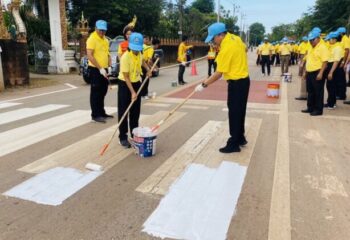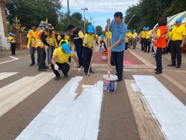ภายในงานมีกิจกรรมจิตอาสาทาสีทางข้ามถนนเพื่อชะลอความเร็วของรถที่ผ่านไปมา โดยมีผู้เข้าร่วมกิจกรรมจำนวนมาก เช่น พ.ต.ท.ธนาตรี ศรีลุนช่าง รองผู้กำกับการป้องกันและปราบปราม สภ.สระใคร หัวหน้าส่วนราชการอำเภอสระใคร คณะกรรมการศูนย์ปฏิบัติการความปลอดภัยทางถนนอำเภอสระใคร นายสมนึก รัตนคุณ นายกองค์การบริหารส่วนตำบลสระใคร กำนัน ผู้ใหญ่บ้าน ผู้บริหารและพนักงานจากองค์กรปกครองส่วนท้องถิ่น และประชาชนจิตอาสาในอำเภอสระใครกว่า 100 คน